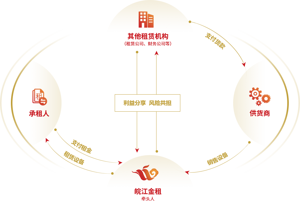 產(chǎn)品定義聯(lián)合租賃是指融資租賃公司之間的一種業(yè)務(wù)合作方式。由一家融資租賃公司牽頭,召集若干融資租賃公司參與和承租人簽訂融資租賃合同,租賃公司按出資比例或約定的方式提供資金、承擔(dān)風(fēng)險(xiǎn)和分享收益。